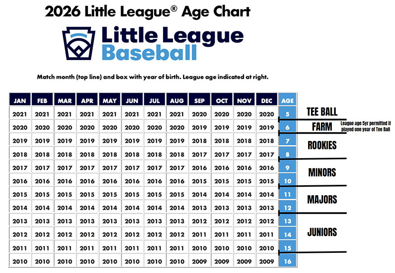 Please review the 2026 Little League Age Chart to see which division is age appropriate for your athlete.
